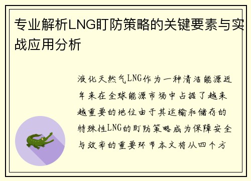 专业解析LNG盯防策略的关键要素与实战应用分析