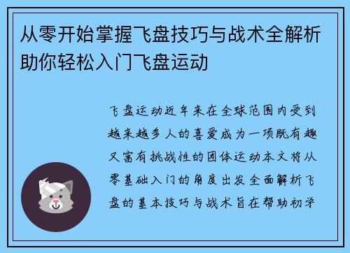 从零开始掌握飞盘技巧与战术全解析助你轻松入门飞盘运动